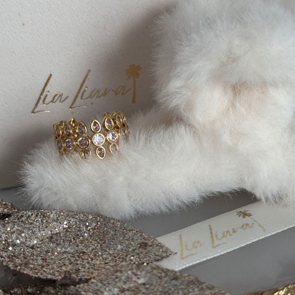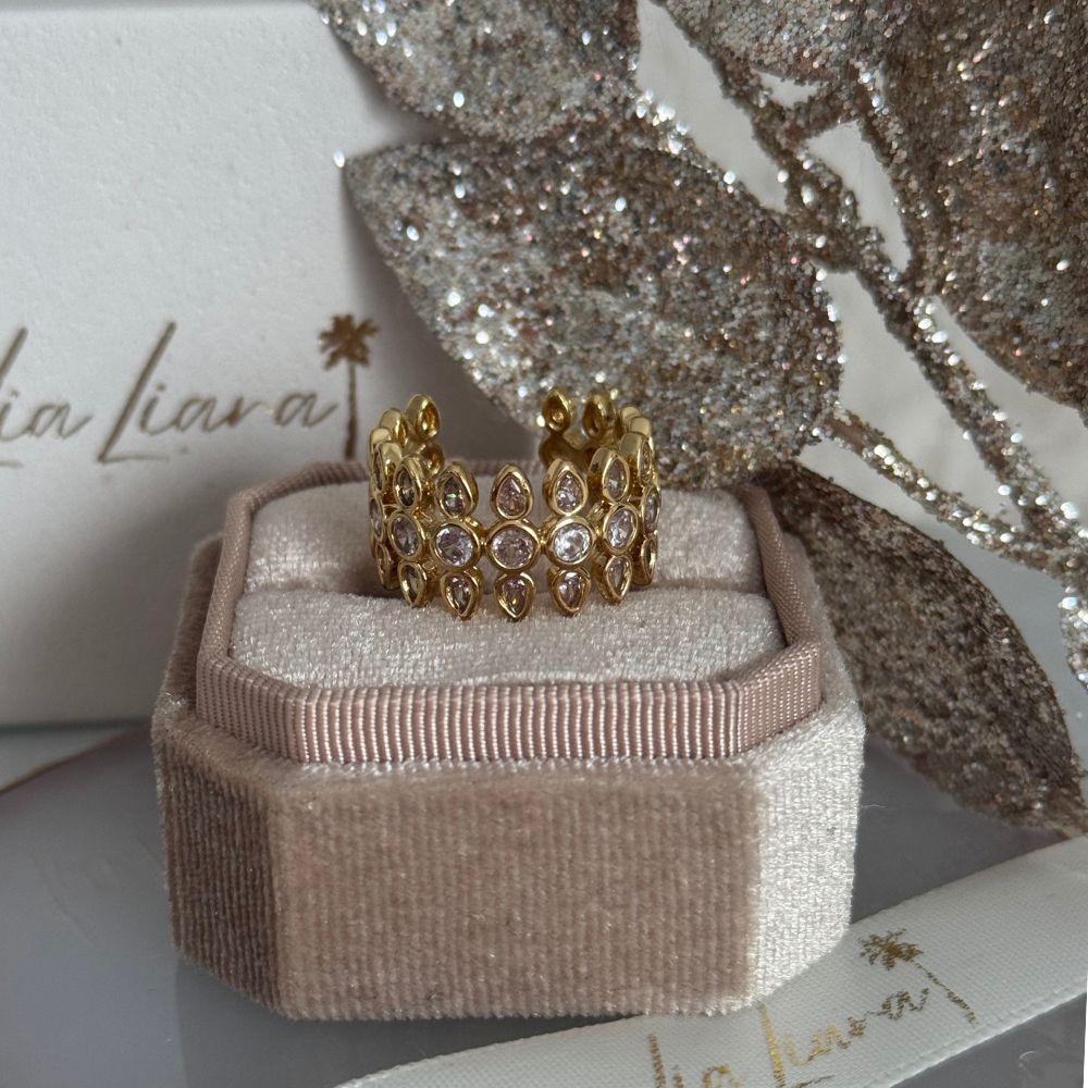 Our beautiful Mina Palm ring is crafted from durable stainless steel and plated with 18-karat gold . Waterproof, this ring will accompany you everywhere without losing its luster. Best of all, it's adjustable , so you can wear it wherever you like.
